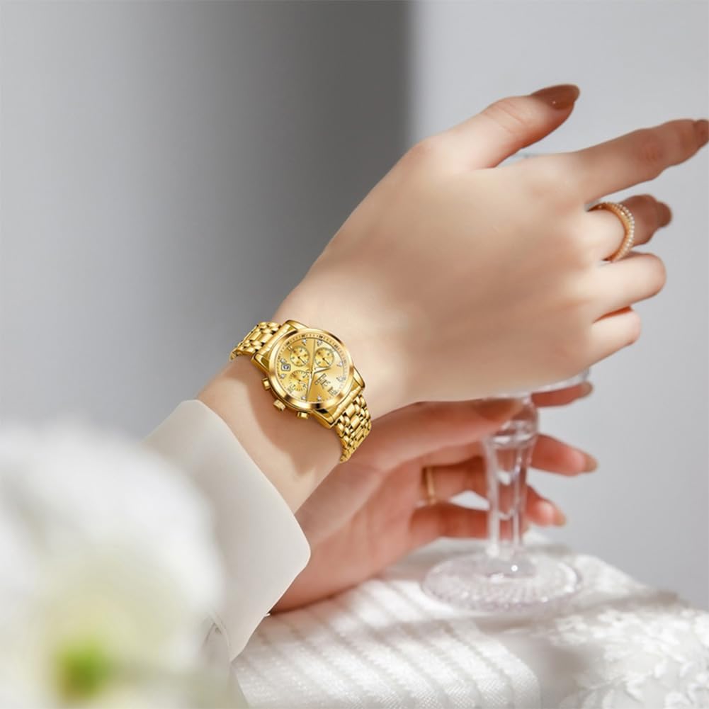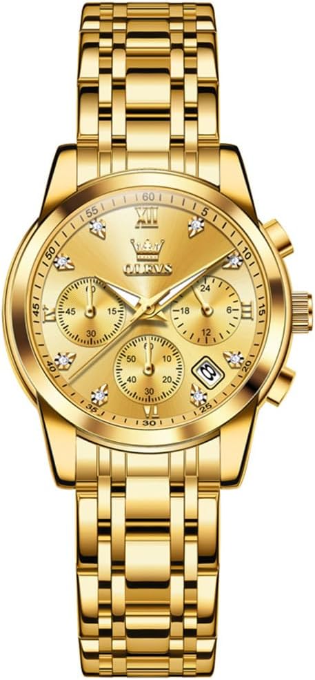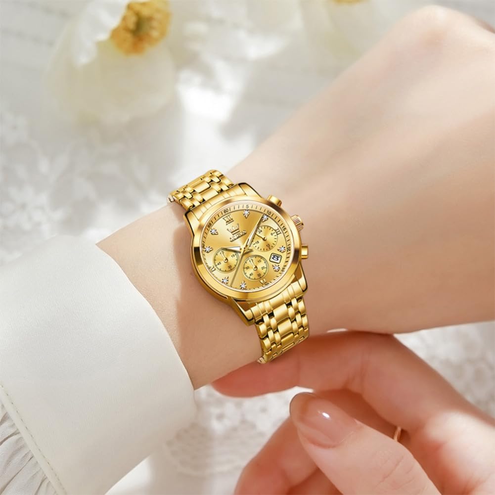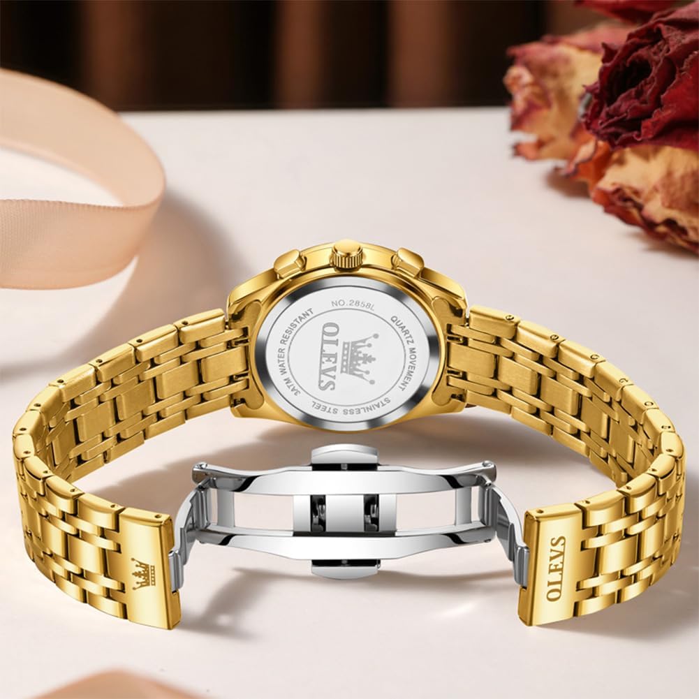 OLEVS Women Watch Multifunctional Two Tone Watch Fashion Business Analog Quartz Ladies Watch Stainless Steel Waterproof Diamond Watch for Women