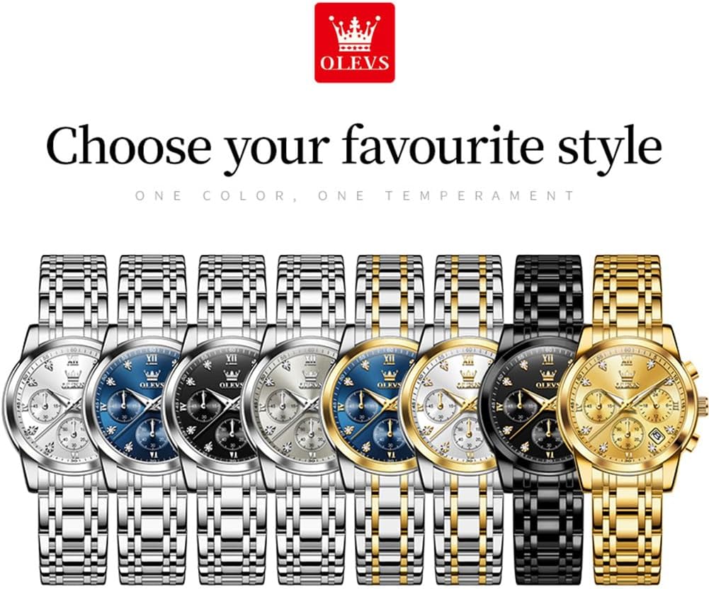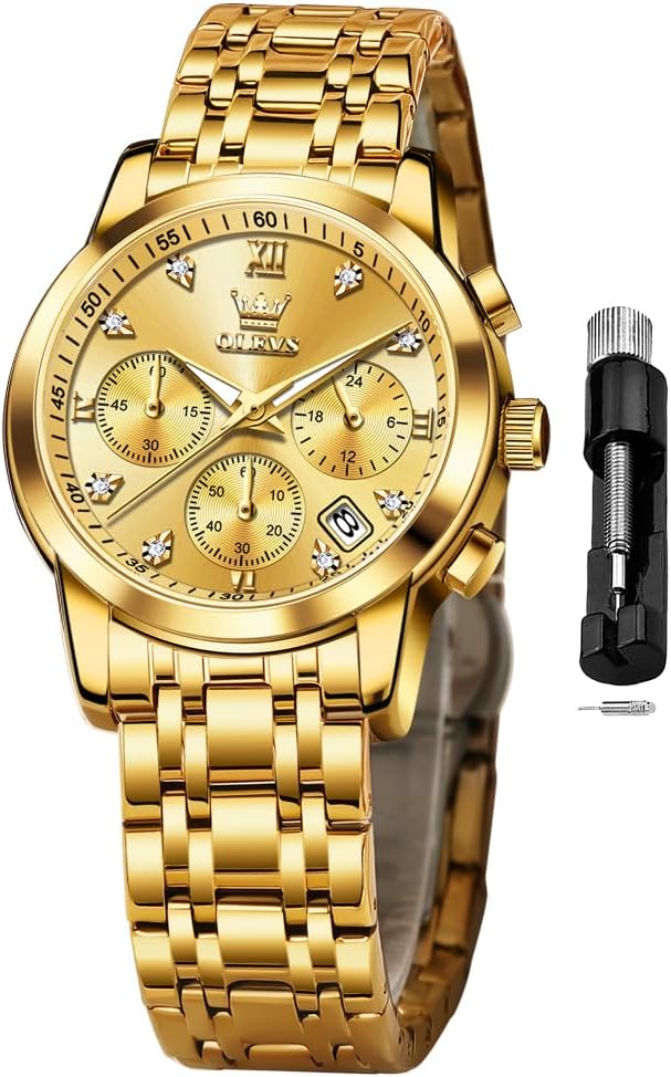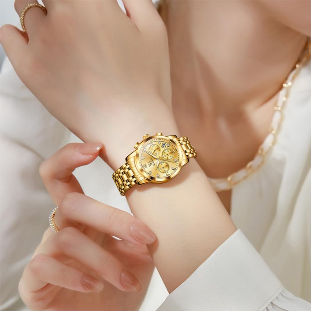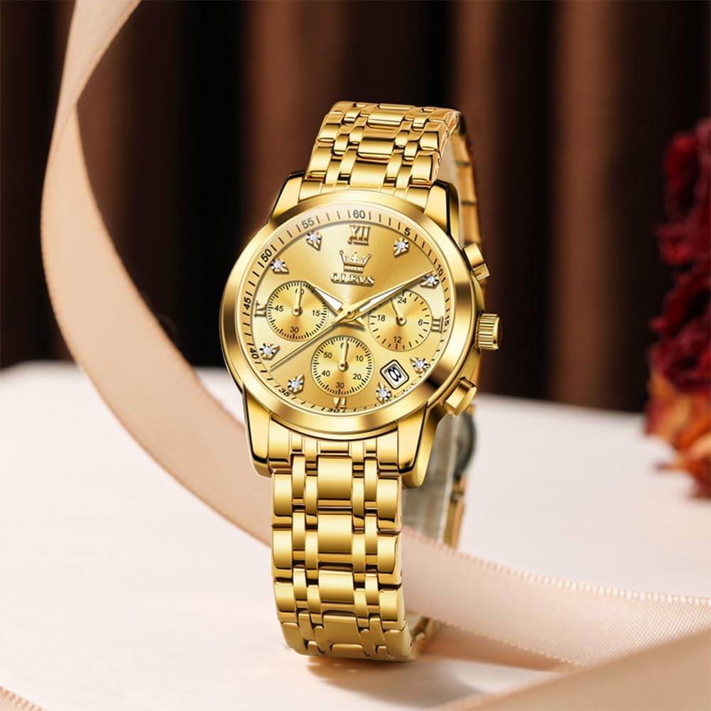 OLEVS Women Watch Multifunctional Two Tone Watch Fashion Business Analog Quartz Ladies Watch Stainless Steel Waterproof Diamond Watch for Women