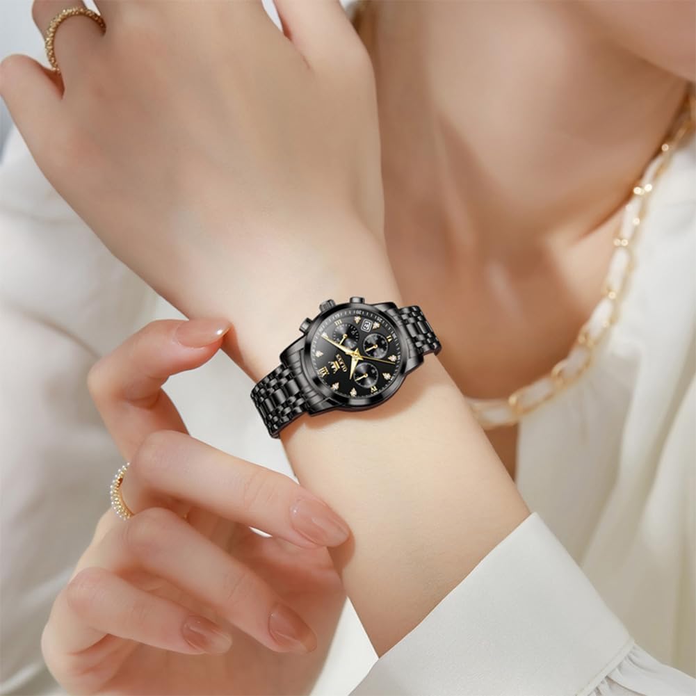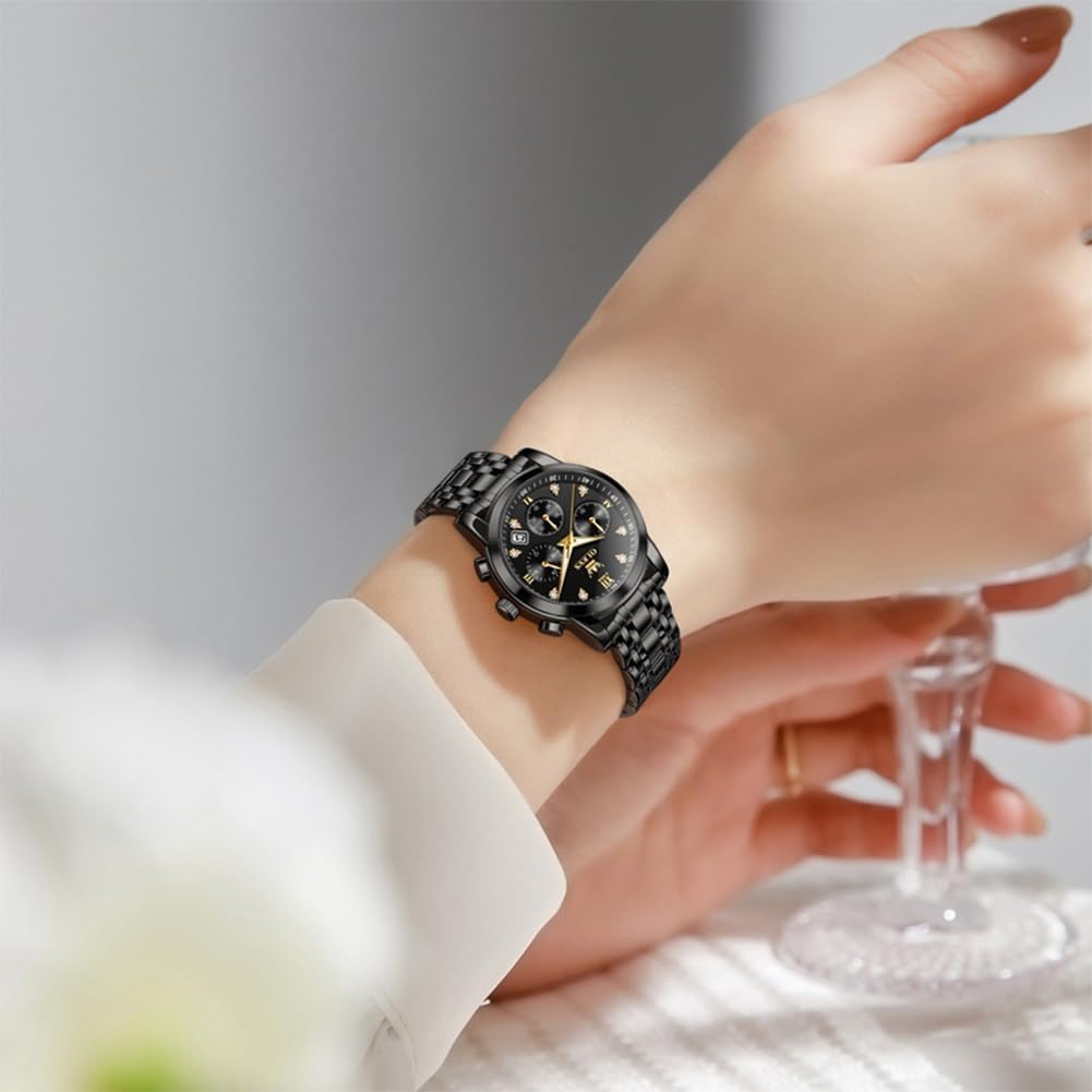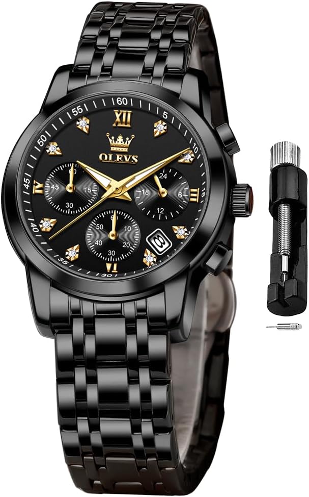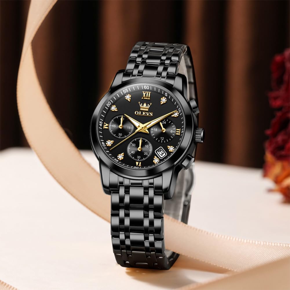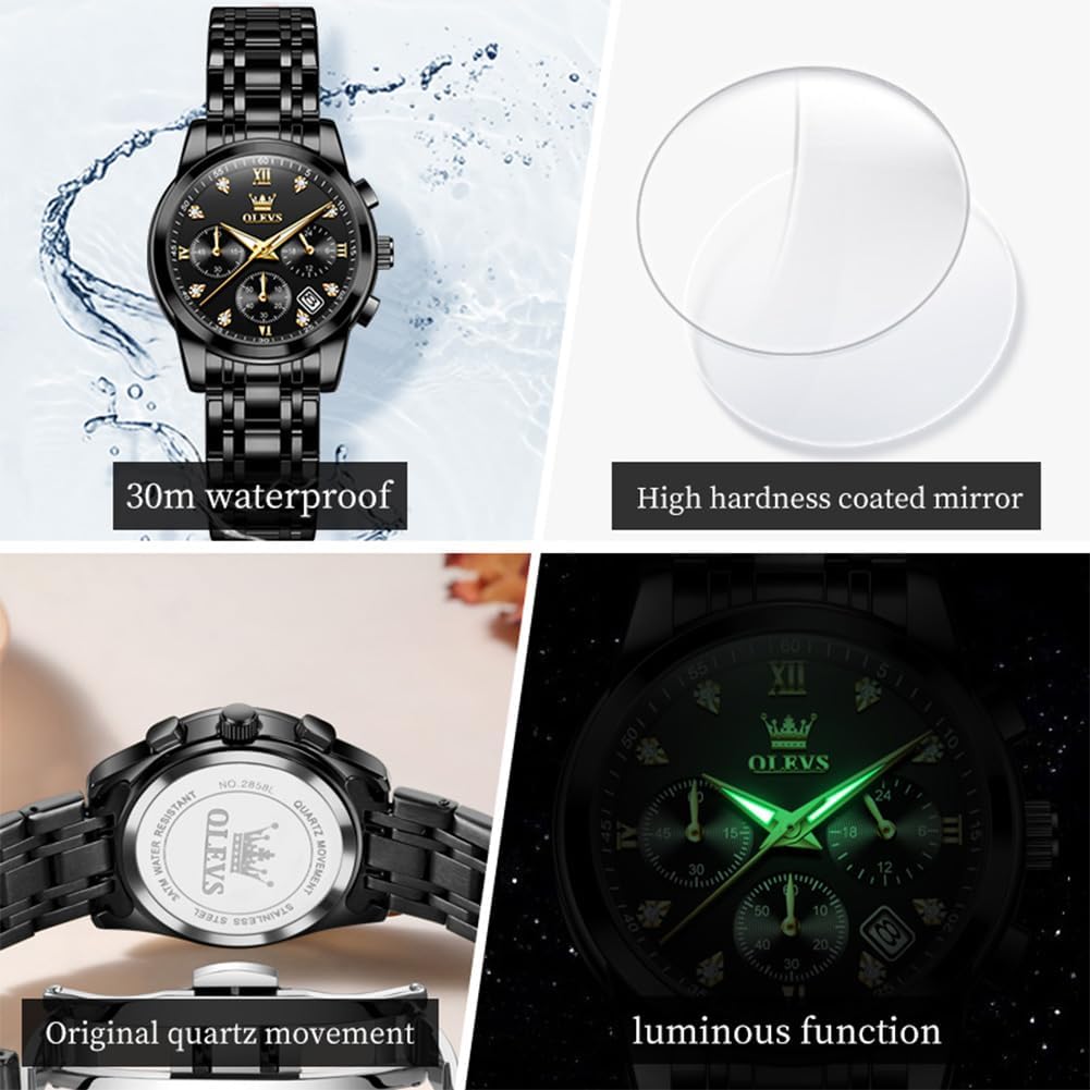 OLEVS Women Watch Multifunctional Two Tone Watch Fashion Business Analog Quartz Ladies Watch Stainless Steel Waterproof Diamond Watch for Women
