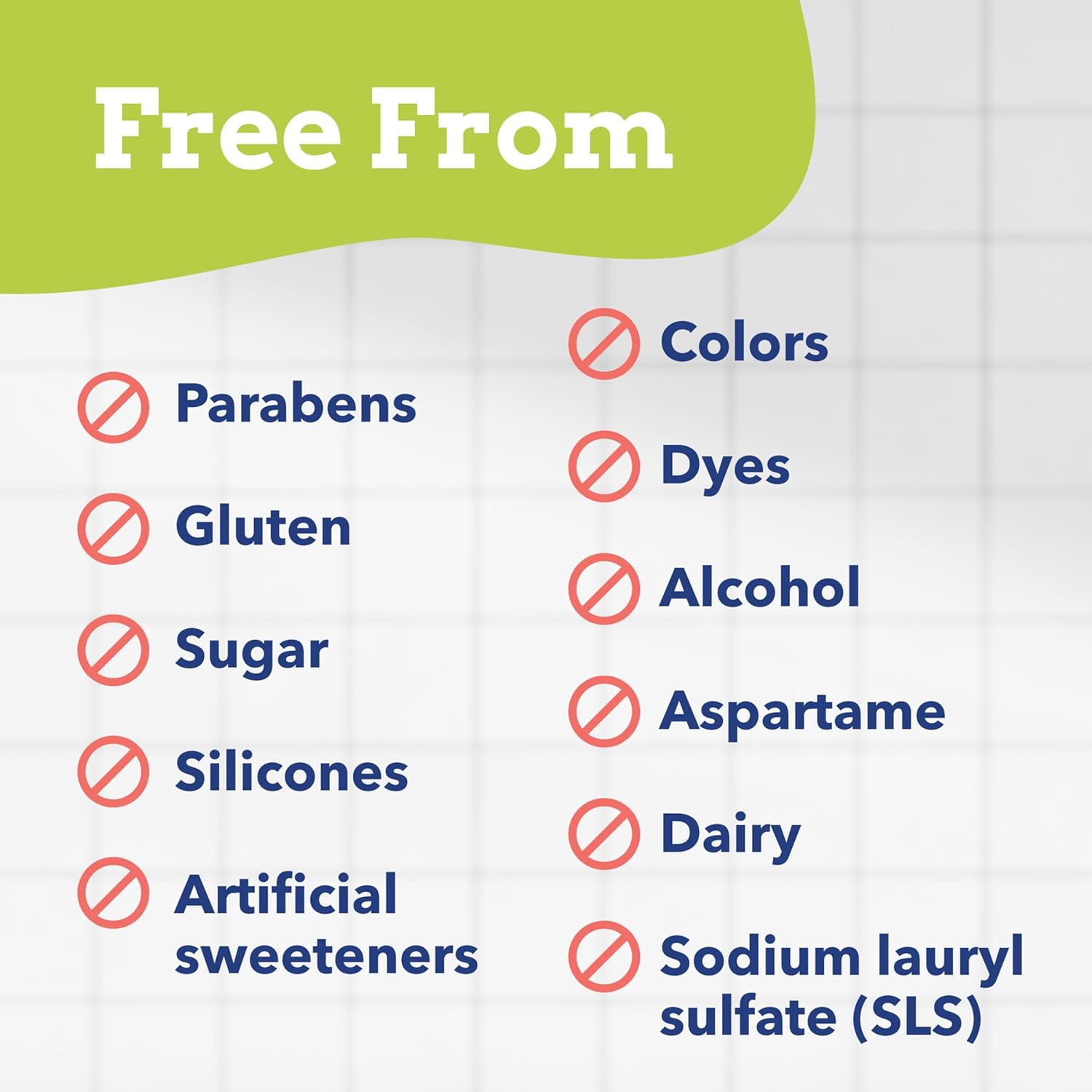 DRUG-FREE: Free from benzocaine, belladonna, eugenol, sugar, menthol, sodium lauryl sulfate (SLS), sulfate, dairy, and artificial colors, dyes, and sweeteners