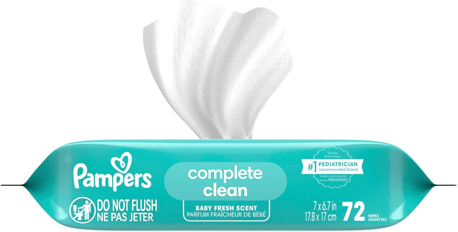 Pampers Baby Wipes, Complete Clean Baby Fresh Scented Wipe, Gently Cleans Head to Toe, 864 Total (12 Flip-Top Packs)