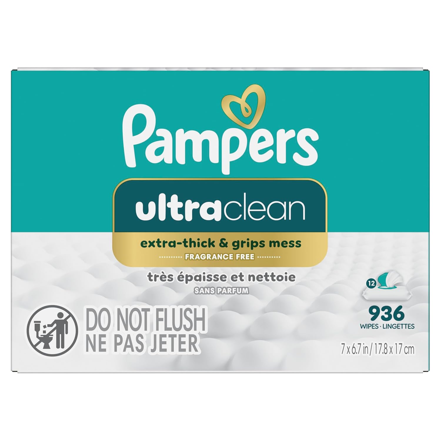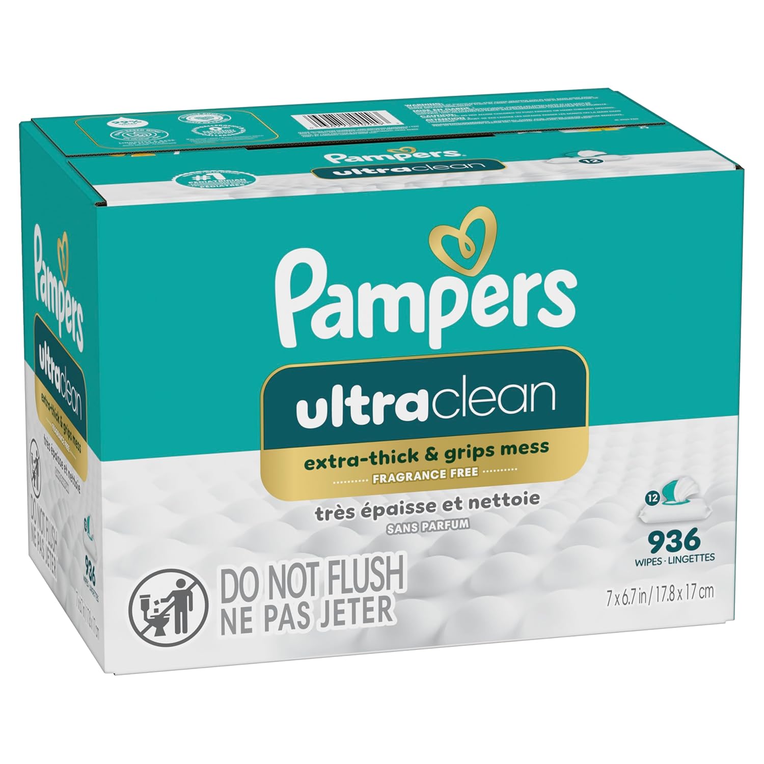 936 Wipes in 12 Packs of Pampers Ultraclean Baby Wipes, Hypoallergenic, Unscented, 99% Water, 100% Plant Based Plastic-Free Baby Wipes