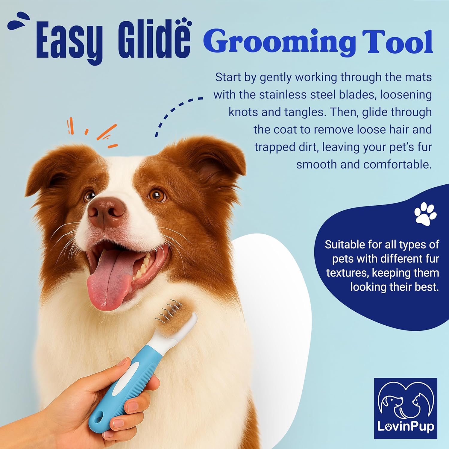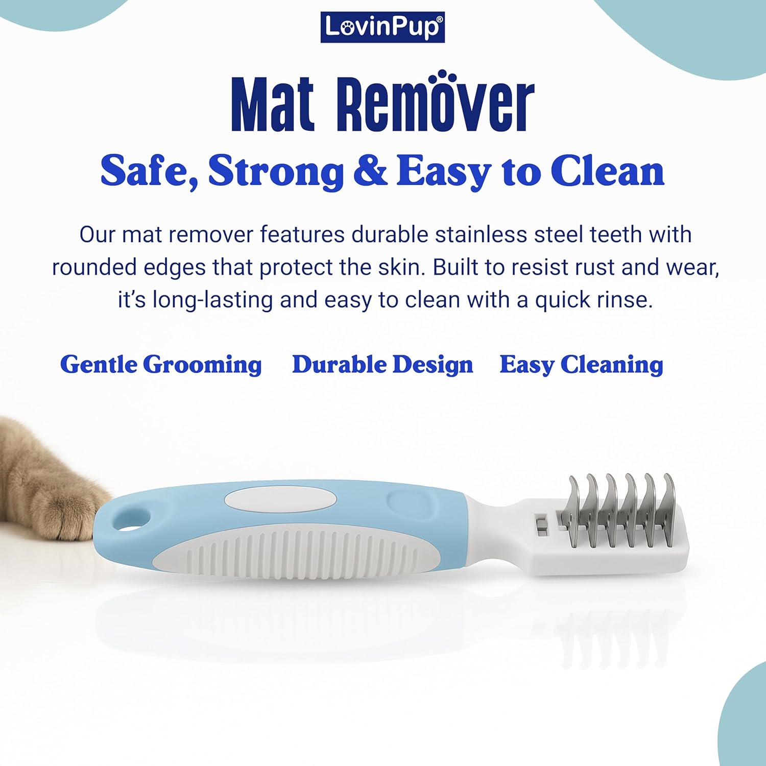 Removes Mats, Knots & Tangles: Our dematting comb for cats and dogs is designed with durable stainless steel rounded teeth; this professional dog grooming brush gently works through stubborn mats, tangles, knots, loose hair, dirt, and dander while keeping your pet’s coat shiny and smooth