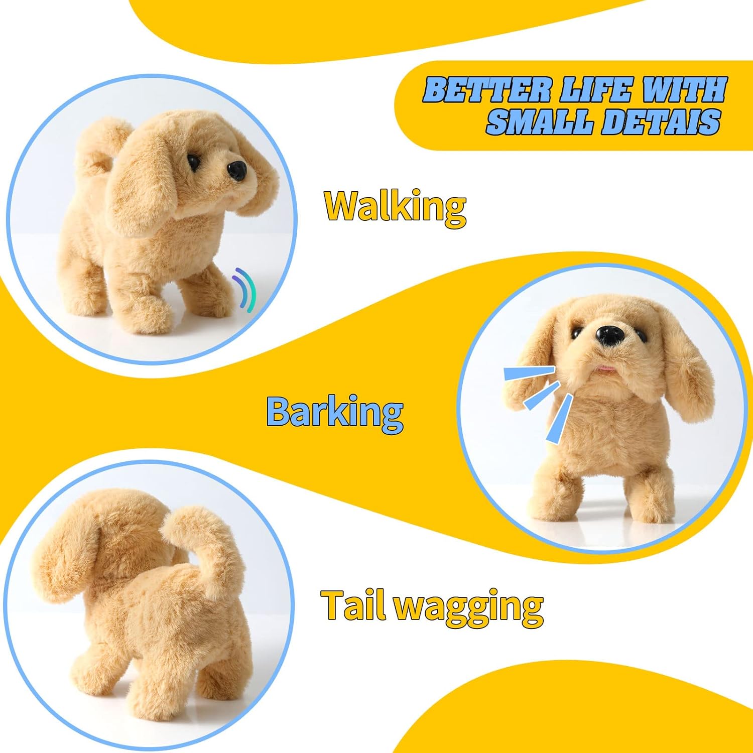 【Safe Materials & Excellent Design】Crafted with high-quality materials, this toy puppy is soft, smooth without peculiar smell. Parents can have peace of mind knowing their children can play safely with this well-designed product.