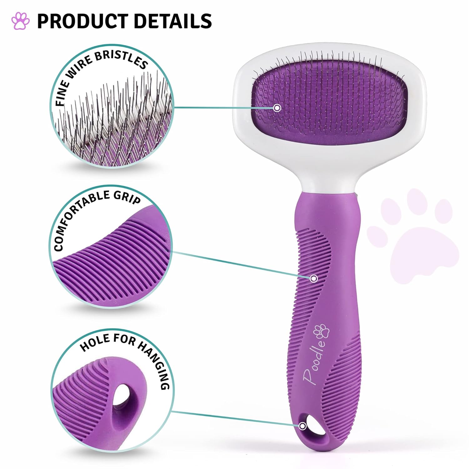 Use Poodle Pet’s Pet Grooming Tool On Dogs And Cats: The primary purpose of this slicker brush is to get rid of any debris, loose hair mats, and knots in the fur. It is rectangular in shape and has fine wire bristles packed tightly together. Each wire bristle is angled slightly to prevent scratches to the skin.
