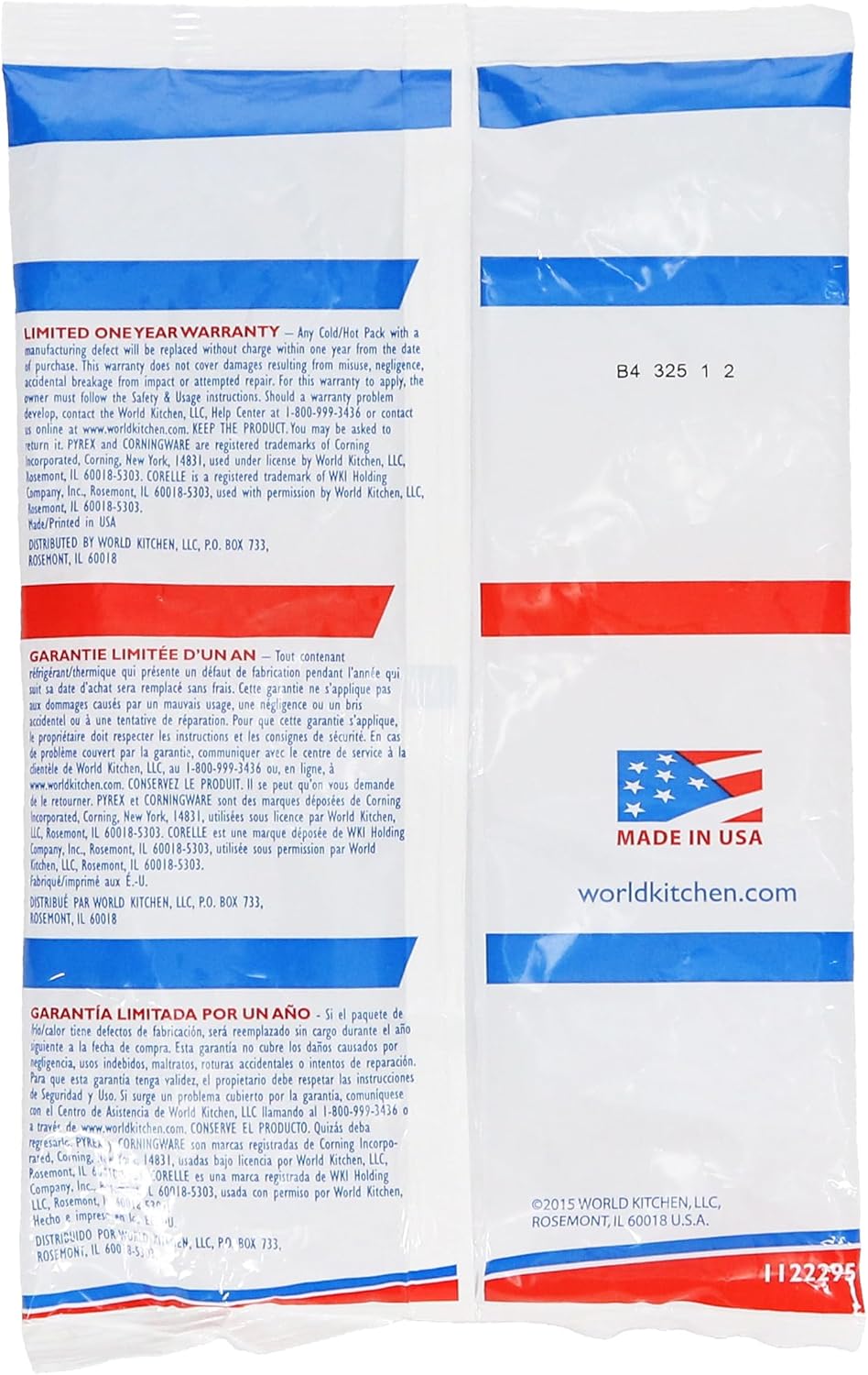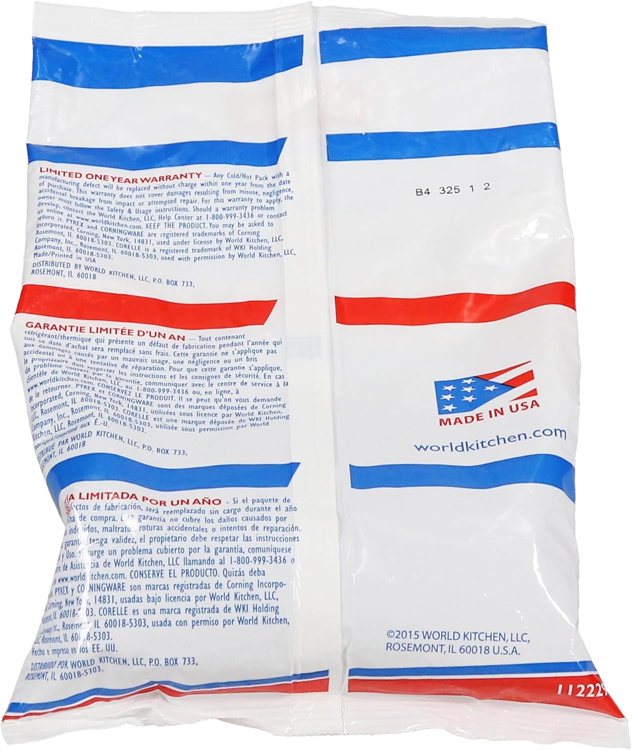 Included: (2) Pyrex Portable Large Cold/Hot Packs – Made in the USA