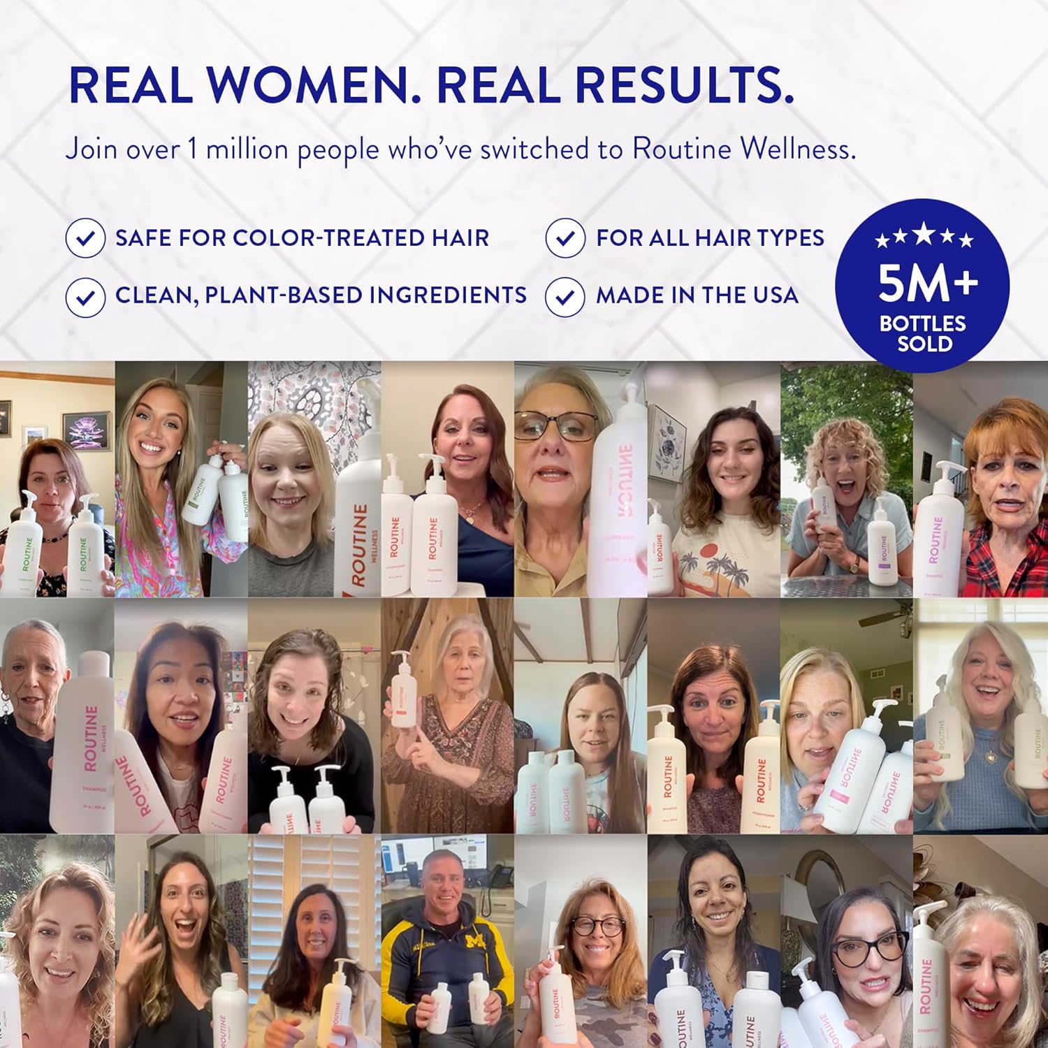 VOLUMIZING SHAMPOO FOR THINNING HAIR – Looking for a solution for thinning hair or hair loss? Our Routine Wellness Shampoo & Conditioner for women are clinically shown to strengthen hair and reduce hair thinning caused by breakage. Powered by biotin, saw palmetto, nettle, niacinamide, caffeine, pea peptides, black seed oil, and more, they help support healthier, fuller-looking hair from root to tip.