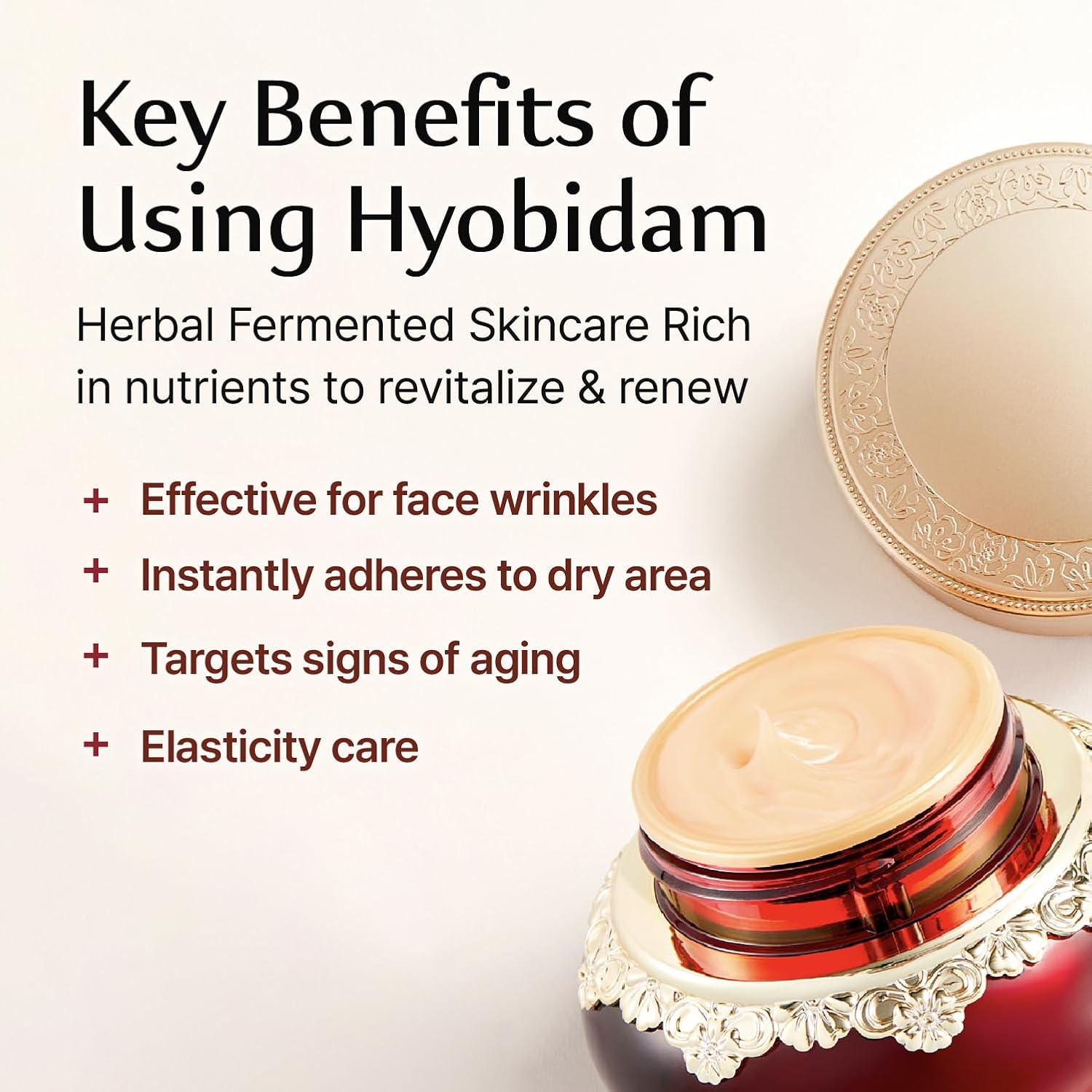 FORMULATED WITH TRADITIONAL KOREAN HERBS – As a rich, smooth and firm texture cream containing the precious herbal ingredients of Baekhyodan. A cream that instantly forms a smooth elastic layer to hold facial lines firmly and give long-lasting moisture and a deep moisturizing feeling.