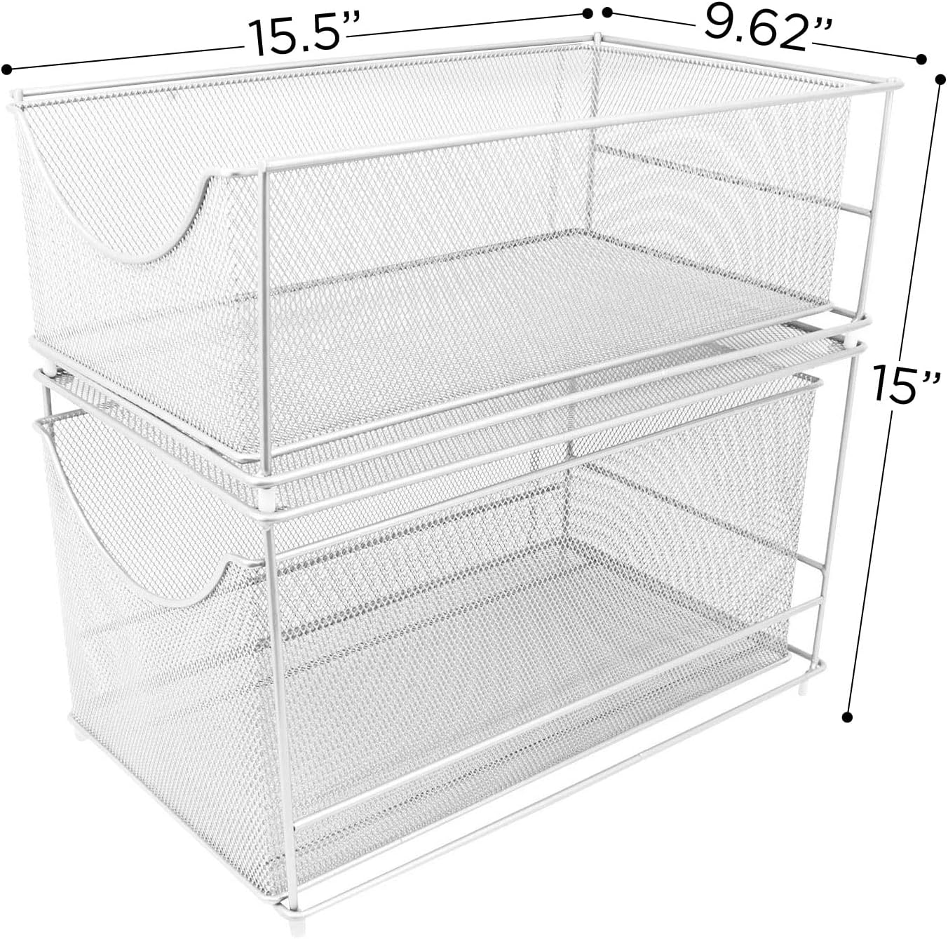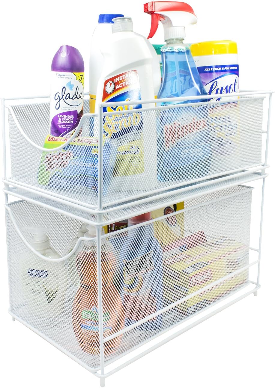 MESH ORGANIZER BASKET DRAWER SET (WHITE, Bottom & Top) — Maximize space with a mesh organizing pull out drawer—Store a wide variety of items including kitchen utensils, toiletries, office supplies, cleaning products, crafting materials, accessories, and more in your kitchen, bathroom, or office
