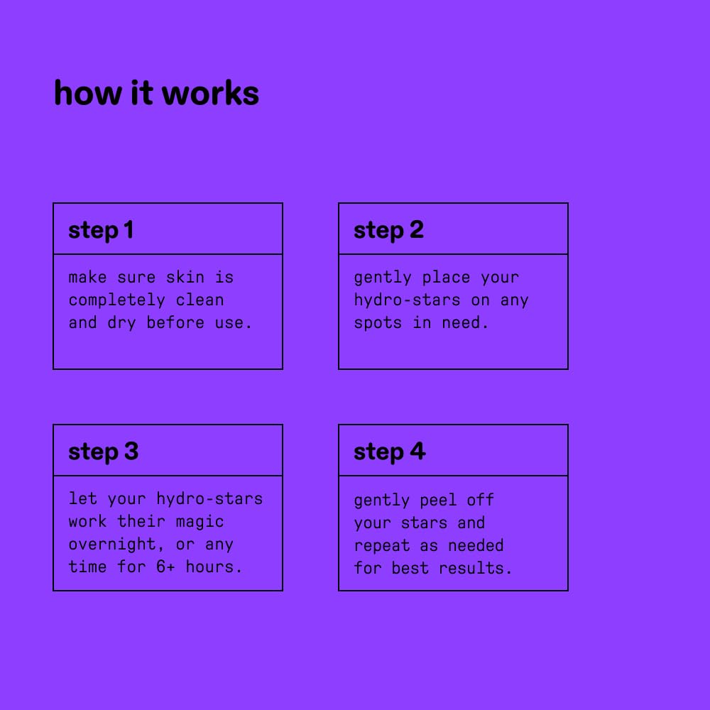 FOR EVERYONE, ALWAYS: Hydro-Stars are the original star-shaped patches. They’re vegan, cruelty free, dermatologist tested, unscented, fragrance free, and safe for every skin type, including sensitive skin.
