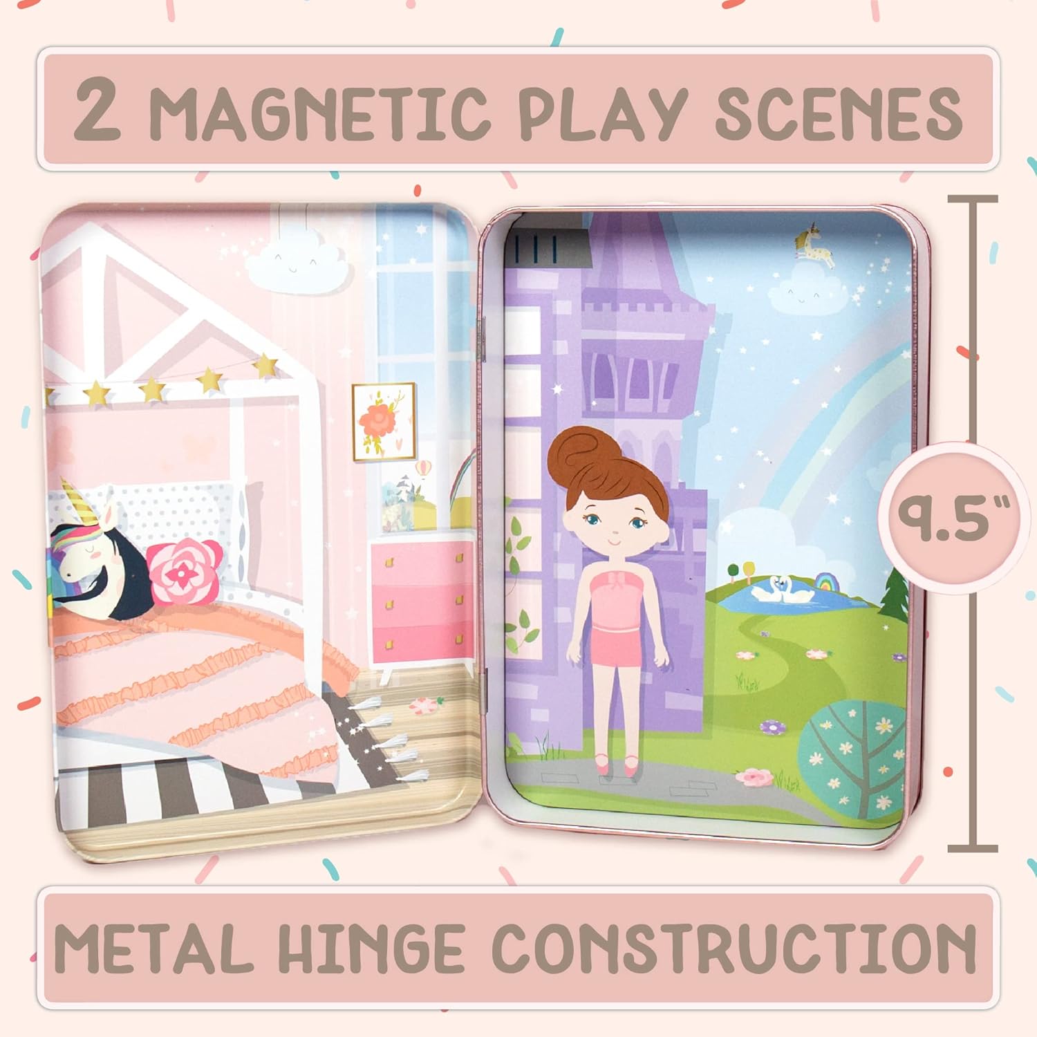 SET INCLUDES: 3 Magnetic Sheets with 85 Magnetic Dress-Up Pieces, 1 Play Scene Case (9.5×1.56×6.5), 1 Mini Story Maker, Easy-to-Follow Instructions