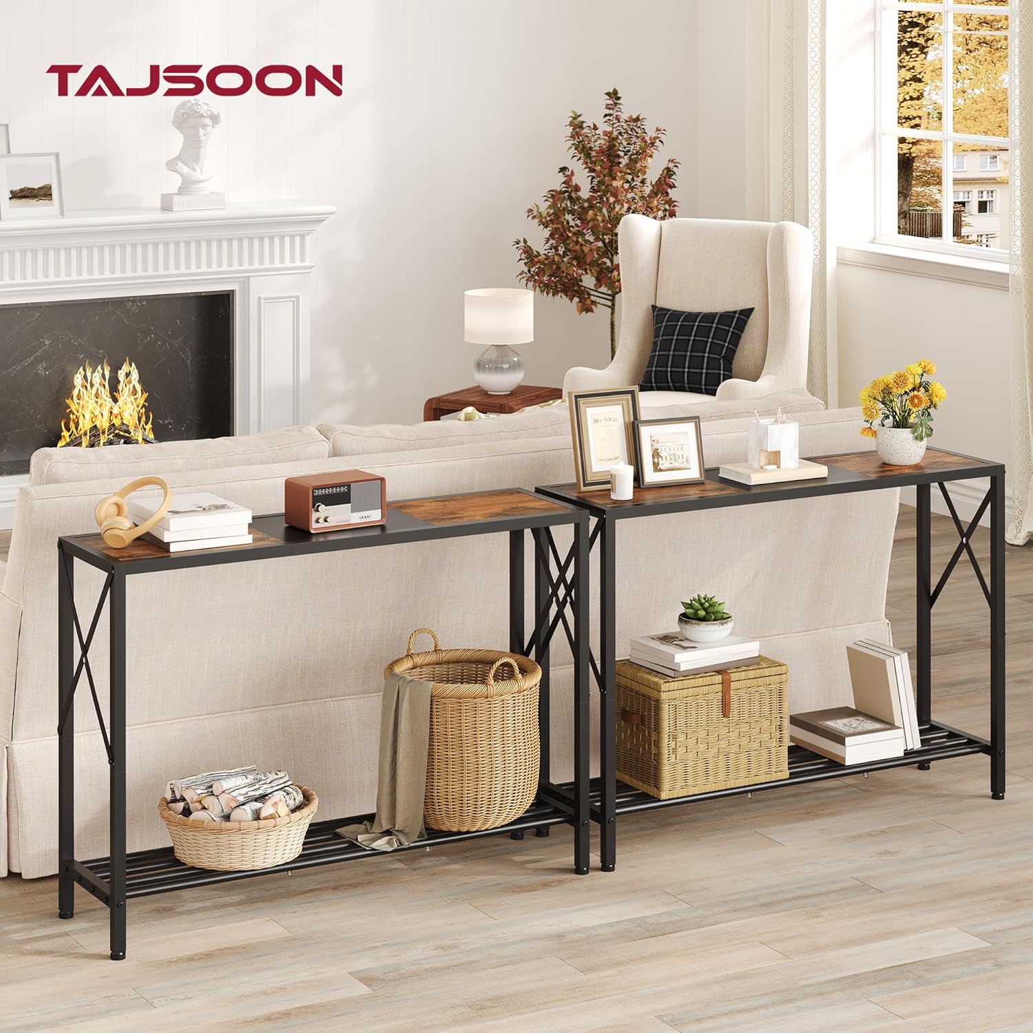 【Sturdy & Durable】Tajsoon console table is made of high-quality wood and heavy duty metal splicing, sturdy enough to offer a long service life. The additional X-shaped frame strengthens the stability of the entrance table greatly.