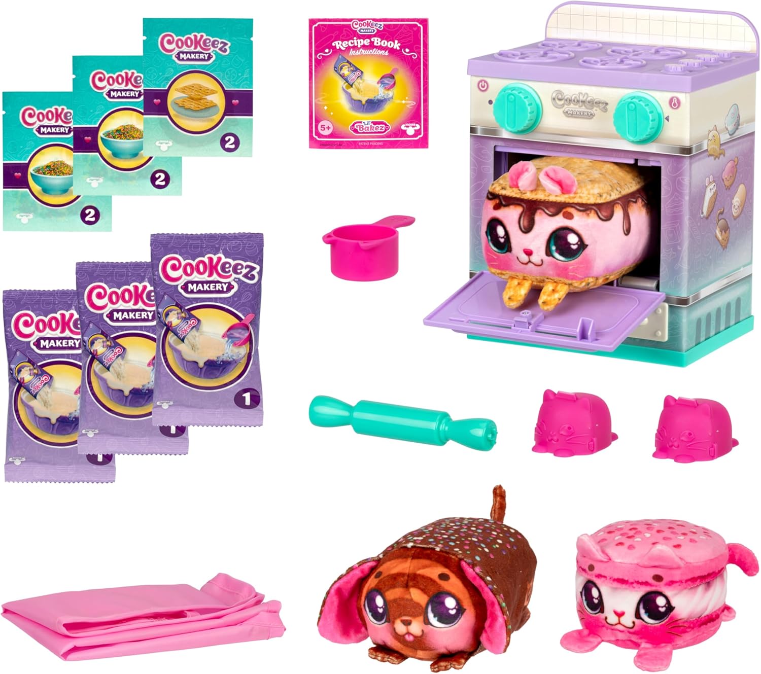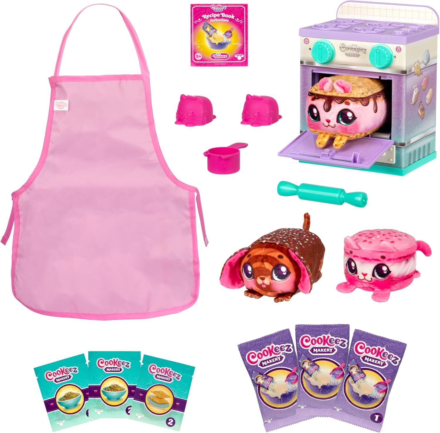 The Cookeez Makery Lil’ Bakez Multi Pet Playset will amaze you and your child when they bake 3 little plush best friends. As they open the oven door they will discover their own scented plush friend in the shape of a yummy smelling baked treat. The Cookeez Makery Lil’ Bakez Multi Pet Playset comes with everything children need to mix and make 3 bakes, with 2 Exclusive plush and a 1 in 6 surprise! When they first open the oven door, they will find ingredients, a measuring cup and accessories to make and create their yummy pet. Let’s get cooking! First, they mix the ingredients to create a dough ball. Then, using the dough mold or rolling pin, they can pop out their creation and add the decorations. It’s so easy! Then place it in the oven, shut the door and turn the timer. When it’s time, open the oven and meet a new friend. Wow! A deliciously scented plush toy to play with. With the Cookeez Makery Lil’ Bakez Oven, baking new friends is easy. Which surprise bakes will they make? This exclusive Amazon Lil’ Bakes Multi Pet Pack contains all the ingredients and accessories including a child-size apron to create 3 different plush, each with their own delicious scent. Children can repeat the process again and again to wow family and friends. You will “bake their day” when you give your child a Cookeez Makery – Lil’ Bakez Multi Pet Pack.