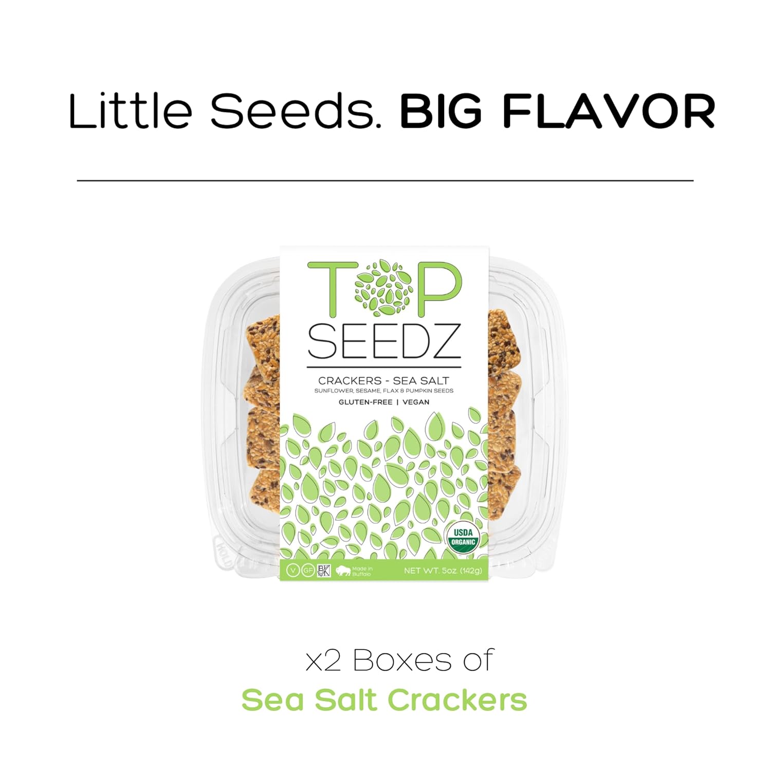 Sea Salt Seed Crackers: The Top Seedz Sea Salt Crackers are our flagship product. Each cracker is made with our special blend of all-natural seeds with a little bit of sea salt giving them that satisfying crunch no matter how you eat them. Dip them, top them, or eat them on their own, you’re sure to enjoy this healthy snack!