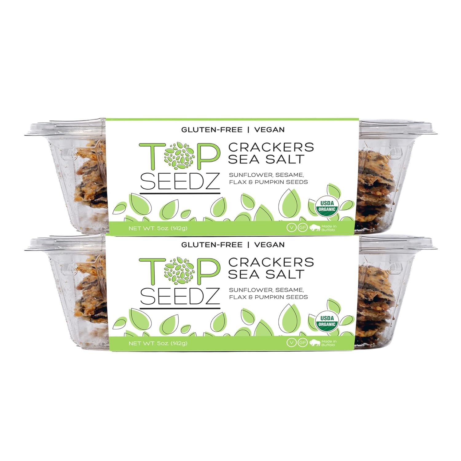 Double Pack Seed Crackers: What’s better than a simple pack of healthy, protein filled, gluten free, nut free, sugar free, organic crackers? Why, two packs of course! With the double pack of 5 ounce Top Seedz Crackers containers, you can share the deliciousness with your friends at a party, on a hike, or just have even more for yourself!