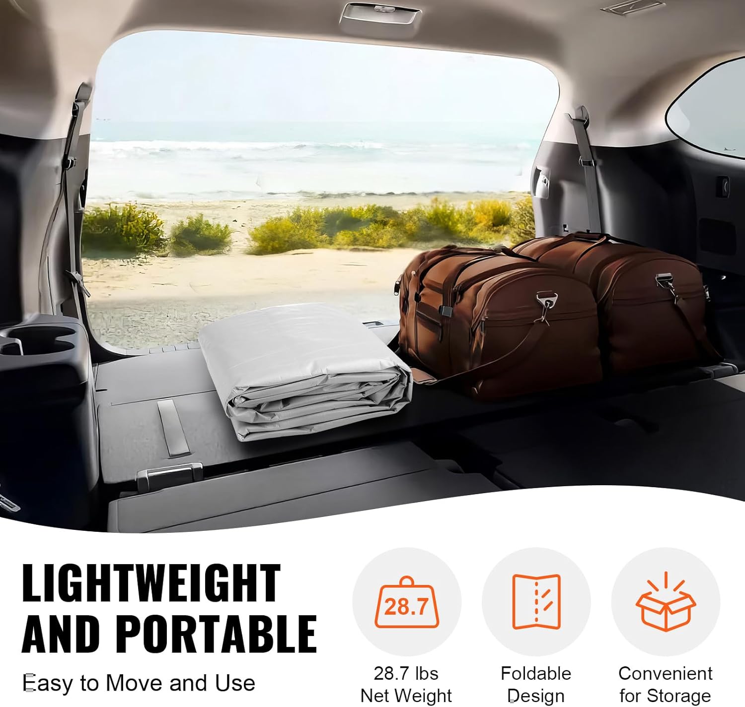 Durable Material: The top canopy fabric is 210g PE plastic woven, while the side panels are 180g PE plastic. Both are crafted with a 16×16 weave pattern for thickness and resistance to water pooling. Double-layer heat-sealed seams and reinforced Velcro attachments ensure durability and longevity.