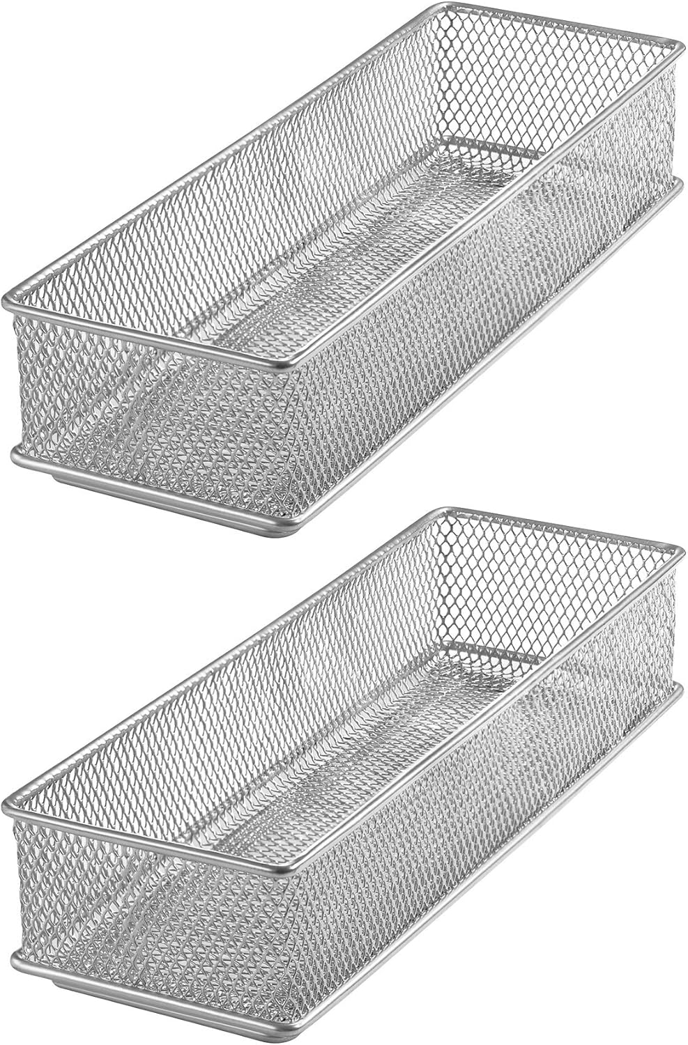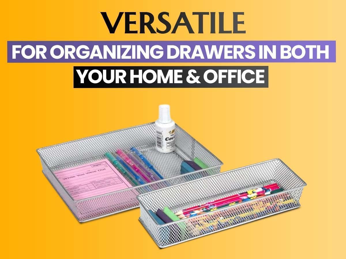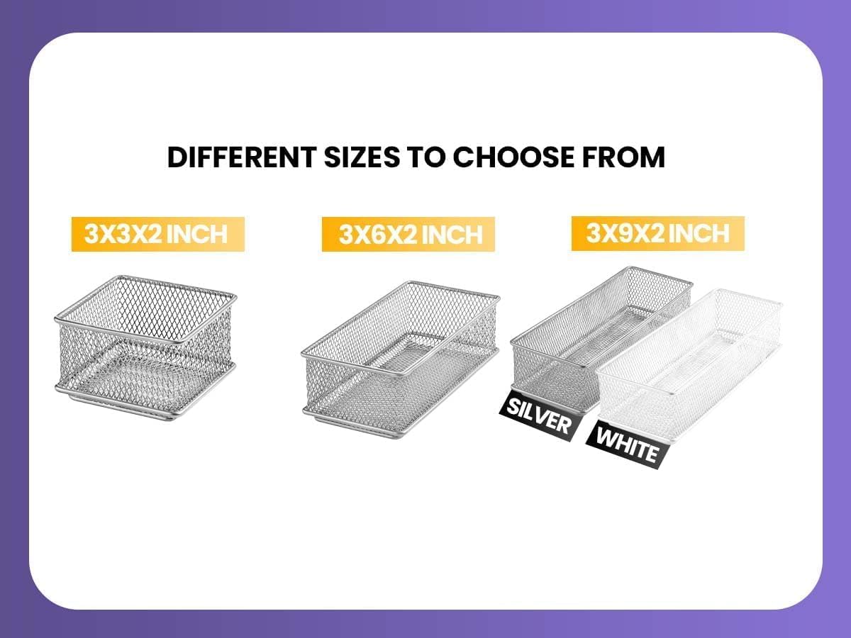 DURABLE AND LIGHTWEIGHT: Metal Construction, Spacious enough to fit various items and various size drawers. Steel wire mesh bins have spacious storage capacity. The steel mesh is durable and sturdy allowing you to organize a variety of products. These steel mesh bins can organize kitchen utensils and gadgets, stationery, craft supplies, keys, batteries, small tools, mail, stamps and more.