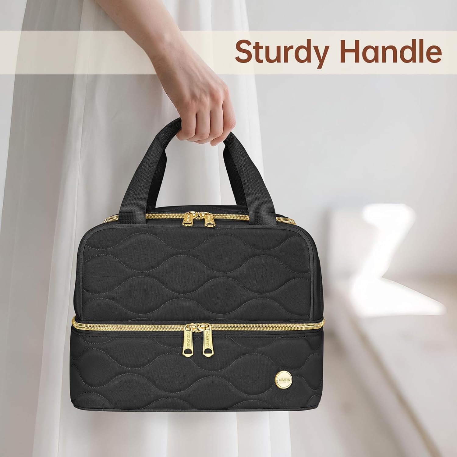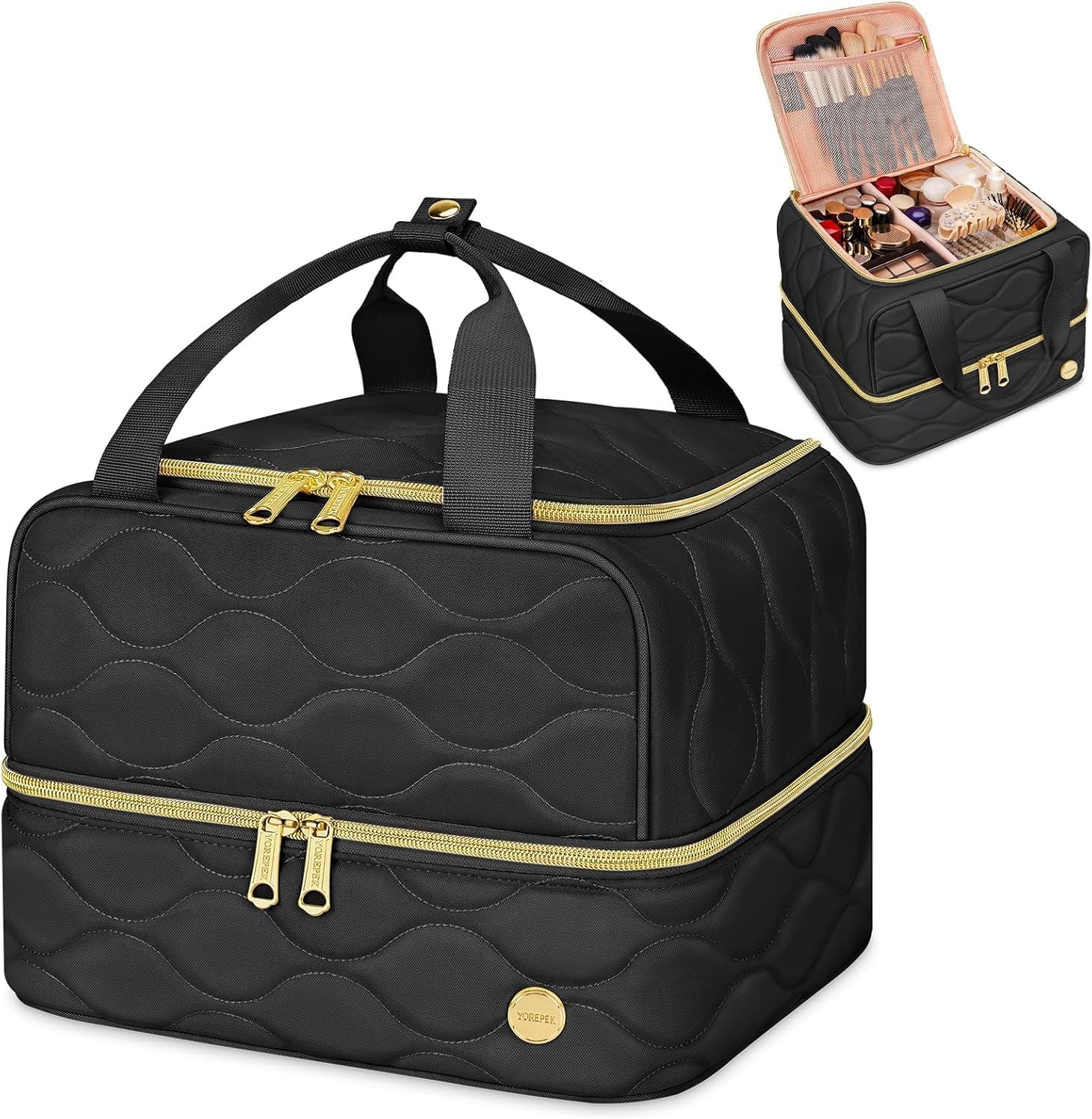 YOREPEK large travel makeup bag features a spill-proof exterior. Advanced fabric treatment ensures that any accidental spills just bead up and roll off. This keeps cosmetic bag safe from moisture damage, adding extra protection and to your daily beauty routine.