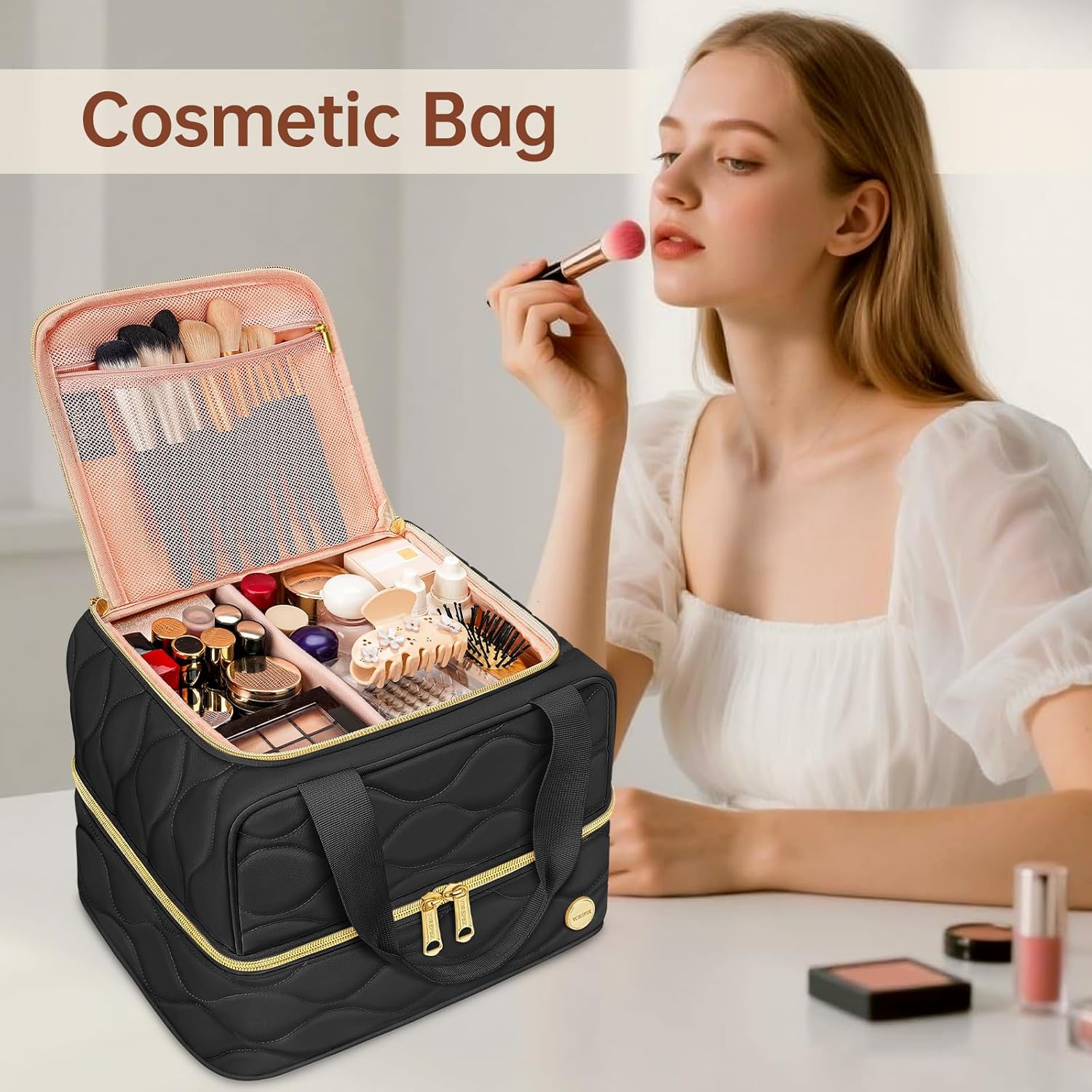 Home & Travel Organized: Whether used as a makeup organizer bag at home or a big makeup bag for salon appointments, this versatile case keeps all your essentials in place; From daily touch-ups to travel preparation, this standing makeup bag ensures easy access and a clean, clutter-free beauty routine—ideal for any vanity or suitcase